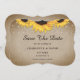 Anpassningsbar, rustiska brickor och bröllop spara datum-solroskort med solblommor i en nödsituation som präglats av ljus. Två spiralhjärtan på en vintage är i bakgrunden. Matchande objekt är tillgängliga.