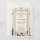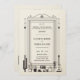 En rustik vintage cowboy bröllopsinbjudan med stiliserad västerländsk stilbrev, samt en vintage illustration av några kaktuskrukor, vintagekameror och en gitarr, på en vintage ram med art deco-influenser. Romantisk och full av rustik charm, det är ett vackert val för ett ladubröllop, ett utomhusbröllop, ett grillbröllop eller någon rustik miljö med ett country western, cowboy bröllopstema.