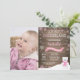 Rustik vinter Onederland Isbjörn 1-års födelsedagsinbjudan med anpassad bild. Hjort. Rosa och vit snöflinga. Första födelsedagen. Flickas 1-års födelsedagsinbjudan. Rustik trädgård bakgrund. För ytterligare anpassning, klicka på "Anpassa"-knappen och använd vårt designverktyg för att ändra denna mall.
