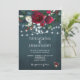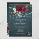 Rustic vinterinbjudan till bröllopet i säsong på en mörk marinblå krita med en vacker, mörkröd burgundi och vit peony ro bouquet med jägare gräs grönt blad, strängar av vitt skinkligt ljus och ett chic typografiskt skript. ++++++++++++++ Enkel att anpassa med dina uppgifter! +++++++++++++++ Inbjudan är lämplig för elegant vintersportsceremonier och mottagningar för rustiska land/gårdshus/stuga/julfester.