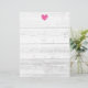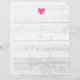 Rustik, vit laduskkornslinje, bröllop-bläckhuvud. Skrivpapper för meny, anteckningar, brev, instruktioner, inbjudningar, meddelanden, aktiviteter, rutter osv. i land chic. Fuchsia rosa hjärta med lätt bakgrundsbild av grått trä. En del av den vackra matchande samlingstematuppsättningen för gifta sig av trendigets brud och groom. Romantisk shabby chic-design. Underbar för utomhusbruk eller sommartid giftermål. Vintage stil stationär.