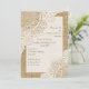 Elegant Rustic white snöre på shabby chic-korvmiddagsinbjudan med kolv som innehåller vitt snöre på naturlig kolvtopp eller hessisk som täcker två hörn av en vit rektangel med beige burlap gräns. Text i brunt. Observera att snöre och överlappningar är "tryckta på" och inte äkta tyg. Denna elegant är en sofistikerad och romantisk shabby chic-utformning med ett rostfritt innersta väsen en del av bröllop och är perfekt för en land chic eller western vår, sommar eller fall/höst bröllop med en neutralt-palett.