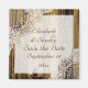 Elegant rustik vit spets på trädgolv spara datum magnet med vit spets på brunt trä som täcker två hörn av en vit rektangel med ram av brunt trä. Texten är brun. Observera att spets och trä är helt "tryckt på" och inte riktiga material. Denna eleganta, shabby chic sofistikerade och romantiska design med en rustik essens är en del av en bröllopssats och är perfekt för ett country chic eller västerländskt bröllop under våren, sommaren eller hösten. Det kommer också att fungera perfekt för ett bröllop med ett västerländskt lada tema.