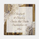 Elegant rustik vit spets på trädgolv spara datum magnet med vit spets på brunt trä som täcker två hörn av en vit rektangel med ram av brunt trä. Texten är brun. Notera att spets och trä är helt "tryckta på" och inte riktiga material. Denna eleganta, shabby chic sofistikerade och romantiska design med en rustik essens är en del av en bröllopssats och är perfekt för ett country chic eller västerländskt vår-, sommar- eller höstbröllop. Den kommer också att fungera perfekt för ett bröllop med ett västerländskt ladutema.