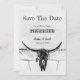 Rustiska westerna vita svarta tjurar land cowboykort bröllop spara datum. Humoristisk, söt, rolig utformning av bondgården stil. Vintagens lantbrukare stil tryckte struktur i en nödsituation. Vilda western gammal antika, coola, trendig, modern utformning av husdjur. Anpassa skriptet. Upphovsrätt Marg Seregelyi Fotography.
