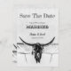 Rustiska westerna vita svarta tjurar land cowboykort bröllop spara datum. Humoristisk, söt, rolig utformning av bondgården stil. Vintagens lantbrukare stil tryckte struktur i en nödsituation. Vilda western gammal antika, coola, trendig, modern utformning av husdjur. Anpassa skriptet. Upphovsrätt Marg Seregelyi Fotography.
