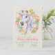 Cute och söt, vit Unicorn-födelsedagsfest med en andedräkt av färgstarka blommor på en lätt träkornbakgrund. Underbar för din lilla cowgirl, magisk fantasi eller ekstranföraren i din familj. Alla formuleringar kan ändras. Behöver hjälp med layouten, bara skicka e-post till länken till tkatz@me.com