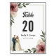 Det elegant vattenfärgen blommigt bröllop bordsnummer är perfekt för ett modernt bröllop. Den romantiska designen har en vattenfärgsfärgad elegant ram med en blommigt- och trimbild och svart kalligrafi på vit bakgrund.