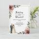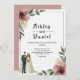Den här elegantens inbjudan till blommigt med vattenfärg är perfekt för ett modernt bröllop. Den romantiska designen har en elegant vattenfärgsbild i ram med en blommigt med brud- och groombild och svart kalligrafi på vit bakgrund.