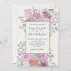 Skapa din bröllopsinbjudan till perfekten med den här vackra, roliga vattenfärgsdesignen. Originalteckningar av blommigt med burgundisk ro och rosa bland söt löv- och grönmynningar. Skriptet för elegant slutför den här designen och anpassar sig enkelt till dina egna detaljer.