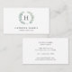 Rustiskt och elegant affärskort med ditt monogram inuti en grönt vattenfärg som målats med grön andedräkt över en vit bakgrund. Nedan är du namn och titel och din kontaktinformation finns på baksidan. En modern botanisk design som är underbar för många yrken.
