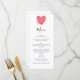 Den här designen har ett strålande vattenfärgshjärta. Den svarta typografin och färgaden röd/orange kontrasterar varandra. Den handmålade hjärtans visningar stänk av vattenfärg som epitomiserar passion. En romantisk, enkel design med en rustik beröring. Den här utformningen passar perfekt för alla bröllop-teman. Menykortsdesign för bröllop under hela säsongen för perfekten. Det finns också möjlighet att matcha bröllopsinbjudningar och andra artiklar i kontorsartiklar.