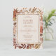 Denna kloka inbjudan fångar höstens skönhet med dess känsliga blommigt och varma terracotta-toner. Oavsett om du planerar en rustik utomhusceremoni eller en intim inomhussammankomst, anger inbjudan perfektens tonläge för evenemanget. Anpassa den här inbjudan till din namn, bröllop-datum och platsinformation för att göra den till din rätta. Gästerna kommer att bli glada över att få en så vackert designad och tankeväckande inbjudan, som utgör ett steg mot ett oförglömligt firande i kärlek. Designad att samordna med för inbjudan till Harper-bröllop. Visa samlingslänken på den här sidan om du vill se alla matchande objekt i den här vackra designen.
