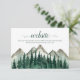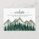 Det här vackra webbplatskortet för bröllop är designat för att ge gästerna veta vart de ska gå online för att få mer information och/eller OSA. Den har en elegant men ändå rustik design med lacy script calligraphy och ett vattenfärgslandskap med tåliga bergstoppar med skogen grönt gräs träd i förgrunden.
