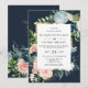 Rustik Watercolor Navy Guld Blommigt Bröllop Inbjudningar