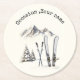 Rustik Watercolor Ski Snö Träd bergsvinter Underlägg Papper Rund