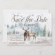 Hjälp dina vänner och din familj att planera för din speciella dag med vårt Rustic Watercolor Woodland Mountain Spara datumkorten! Anpassa med din party-information för att skapa ett slags kort som säkert imponerar på din familj och dina vänner. Designad med ett blommönster med vattenfärg, trädjur, träspån, modernt typsnitt och träbaksida.
