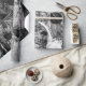 Den här westerna skorstensfarkosten med pappra rullar har en svart och vit solblomma i struktur med en land-skalle med hög utformning. Blommigt vintage antique farmhouse stil. Upphovsrätt Marg Seregelyi Fotography.