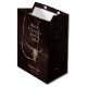 Den här länderna, westerna, medelstora, pappra presentsäcken i bröllop har en kock som är utformad för en kornskinka. Personlig brun struktur-bondgård föredrar förpackningar. Gamla vilda western vintage-antik inspirerade. Coola, trendig, modern utformning av jordbruksdjur i stil. Text överst: Tack för att tillbringa vår Speciella dag med oss. Upphovsrätt Marg Seregelyi Fotography.