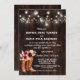 Charming Rustic Western Cowboys Bröllop-kort. Den har vattenfärgscowboyskor och cowgirl-skor med pampas-gräs, torkad handflatan-löv, lunaria, burgundblommor, sträng-ljus, på en gammal trälingbakgrund. Använda Anpassa det verktyg om du vill lägga till din information. Om du vill ha matchande objekt går du till min samling för Westerna Landsbyggsbröllop.