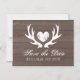 Rustik wood hjort antler bröllop spara datum magnetisk inbjudningskort