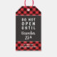 Den traditionella röda Buffalo plaid mönster finns på dessa helgdag. Öppna inte förrän den 25 december i en modern vit typografi. Anpassa med datum, ditt namn och mottagarna namn. En underbar detalj för helgdag presentförpackning.