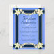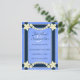 © Sunny Mars Designs. Rustika Guld Blommiga Spara Datum Kort – Detta anpassningsbara formella anpassade vintage rustika blå eleganta bröllop spara datum bröllopsannonserings postkort har en illustration av en mörkblå banderoll kant med moderna vackra vita blommor mot en ljusblå gammal pergamentpapper bakgrund.