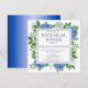 Rustika Blå Hortensia Vattenfärg Övningsmiddagsinbjudan är en vacker vattenfärg med blå hortensia och grönska. Perfekt för en vår/sommarbröllop. Du kan anpassa genom att välja "Anpassa denna mall" eller om du vill anpassa denna design ännu mer, välj "Redigera med designverktyg". Om du behöver matchande artiklar, vänligen kontakta mig.
