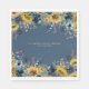 Fira värmen och vitaliteten i din kärlek med denna fantastiska solrosbröllopsdusch servett med personlig touch. De livfulla gula och bruna nyanserna av solrosorna, kompletterade med de dammiga blå vallmorna och den frodiga gröna bladverken, skapar en fängslande och glädjefylld atmosfär. Den mörkblå bakgrunden tillför en touch av sofistikation, medan det rena vita typsnittet säkerställer en modern och elegant look. Denna design är det perfekta valet för ett sommarbröllop och fångar essensen av lycka och firande. Skapad av Simply Farmhouse Press.