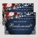 Rustika Bröllop Blå Trä Strängljus Spets Akvarell Vinröd Marsala Blommig Vill du vara min Brudtärna Kort