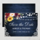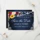 Rustika blå trästrängljus spets akvarell vinröd marsalablomma Bröllopskortet innehåller vinröda rosor, rosa rosor, röda rosor, solrosor och botanisk grönska.
