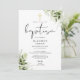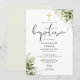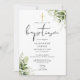 Denna eleganta botaniska grönska blad dop inbjudan kan anpassas med din information i chic typografi med din monogram initialer på baksidan. Designad av Thisisnotme©