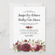 Eleganta rustika bröllopsinbjudningar med enfärgad vit bakgrund som kan ändras till valfri färg, en samling marsalröd, burgunder och rosablommiga blommor i vattenfärg, och en modern bröllopsmall.