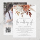 Rustik Terrakotta Blommiga Fotoöverlägg QR-kod Bröllop. Eleganta blommor och bär och gräs i höstfärger terrakotta brunt och kräm, flödar ner från toppen. Bröllopet är skrivet i ett handskrivet manus. Personifiera enkelt resten av texten med dina egna detaljer. Ersätt exempelbilden på baksidan med din egen. Lägg till din QR-kod på din bröllopswebbplats på baksidan gör detta till ett bekvämt alternativ för dina gäster att svara och se alla detaljer utan att behöva separata svarskort och informationskort. Din QR-kod kommer automatiskt att genereras för att uppdatera exempelkoden i designen när du helt enkelt byter exempel-URL i mallen med din egen bröllopswebbadress.
