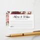 Eleganta rustika bröllopskort med visdomsord på ett vanligt vitt bakgrund som kan ändras till valfri färg, linjer att skriva dina visdomsord på och en samling marsalröda, burgunderröda och rosrosa akvarellblommor på baksidan.