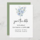 rustika blommor och blad i dammig blå akvarellstil spara datumet