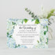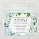 Vågrät 5x7 papper inbjudningslayout ge denna romantiska blommigt inbjuder till en modern beröring. Ett överflöd av mjuka, vita och blå vattenområden omger ditt rektangulära inbjudningsformat. Den omvända sidan är ett täckt vitt trä, ett skippat färgat stil-mönster. Artwork Copyright Audrey Jeanne Roberts.