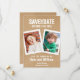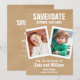 En rolig spara datumet-inbjudan med dina barndomsfoton på en vintage rustik kraftbakgrund. Baksidan har ytterligare detaljer om spara datumet, inklusive adressen till din bröllopswebbplats.