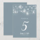 Prisvärda tryckta bordskort för bröllop med en enkel gör-det-själv-mall för anpassning. Denna rustika design med lantlig charm har strängar av lysande slinglampor och masonburkar mot en dammig blå bakgrund. Anpassa varje bordskort du behöver och lägg till varje i din varukorg individuellt (obs: om du lägger till ett stort antal kort i din varukorg kommer de att tryckas med samma nummer). Använd designverktygen för att välja typsnitt och färger som du vill eller ladda upp dina egna foton för att skapa en unik design för din bröllopsdekoration!