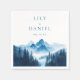 Dessa rustika moderna blåa akvarellberg bröllopsservetter kan personanpassas med din information i modern typografi. Designad av Thisisnotme©