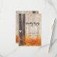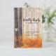 Lantlig höst bröllopsvar kort med en rustik höstskog med röda, orange och gyllene blad, silverbjörkträd, ett sagolikt snidat hjärta på trädet med brudparets initialer, och en elegant redigerbar bröllopssvarsmall.