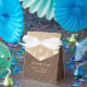 Elegant, vintage, rustik trä- och roséguldbröllopspresentlåda med förgylld blomsterbroderi.