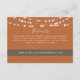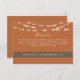 Detta bröllopskort med detaljerad information blandar modern sofistikation med lantliga och bohemiska influenser. Mot en rustik bränd orange bakgrund visas ömtåliga strängar av lampor och en enkel kalligrafiskrift. Besök vår bröllopswebbplats för all viktig information, och njut av den perfekta blandningen av elegans och rustik charm.