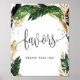 Rustika bröllopsfavoriter med tropiska blad skylt