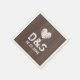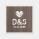 bröllopsfest av napkins av vintage mörk brun ladugårdskläder. Ecru färg. Rustik chic på träplattan i land. Lägg till namn initialer av brud och dagg plus datum för giftermål. Kartläggning av elegantens Anpassningsbar för trendiget shabby chic bröllop, förlovningsfest, möhippa, årsdag osv. Styrka med ett avbländat kärlek-hjärtsymbol. Romantiskt schabbyskt DIY-tema för par gifta sig. dekorationer och tillbehör till trendig för bröllop. Personlig initialer.