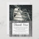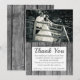 Detta rustika och moderna bröllopsfotokort är ett bra sätt att tacka din familj och vänner för att de firade den stora dagen med dig Lägg till ditt bröllopsfoto på kortet. Använd knappen Anpassa för att ändra storlek på eller flytta fotot så att det passar kortet. Anpassa namn och detaljer på kortet efter dina behov.