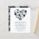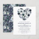 Personliga bröllopsinbjudningar i marinblått och dammigt blått med en trendig vit bakgrund som kan ändras till valfri färg, ett rustikt blått hjärta med akvarellblommor och en modern bröllopsmall.