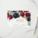 Rustika Bröllopskort för RSVP i Burgundy och Marinblå - har eleganta akvarellrosor och peonior i olika nyanser av Marsala, burgundy, merlot och marinblå med elegant grönska. Det finns inslag av guldstänk genom blommorna och grönskan. Teckensnittets layout visar tryckt guld och brons bläckfärger för extra dekoration. Se den matchande kollektionen på denna sida för att se alla matchande produkter.