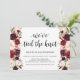 Det här rustika burgunderblommiga temainbjudningskortet är perfekt för din bröllopsmottagning / festfirande. Lägg till dina detaljer i matchande svart teckensnitt / bokstäver.