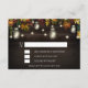 Rustika bröllopskort med murkla och glödande ljus i masonburk - har en rustik lada trähybridbakgrund med lönn, ek och andra blad i höstfärger -- rött, vinrött, gult, grönt och orange med sträng lysande ljus igenom. Masonburkar fyllda med ljus eller lysande insekter är också tillagda i designen.